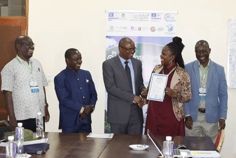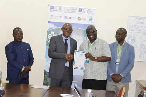 Furthermore, he said that “the combination of NbS and Climate Finance creates a powerful framework to mitigate climate impacts while ensuring ecosystem sustainability and biodiversity conservation. In this context Ecohydrology is considered as a new paradigm shift as Nature-based Solution for environmental sustainability as indicated in the training theme”. Thereafter, he certificates of attendance (Figure 5).