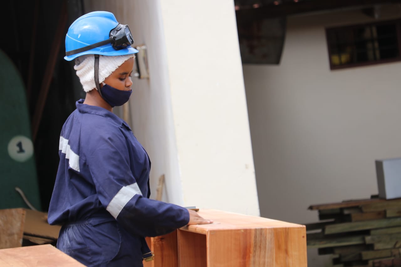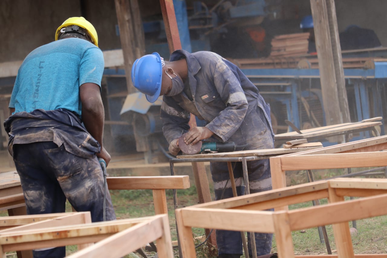 Some of the activities they carry out include kiln drying timber, making tables, chairs, and cabinets, while also learning to operate various modern machines available at this state of the art factory on campus