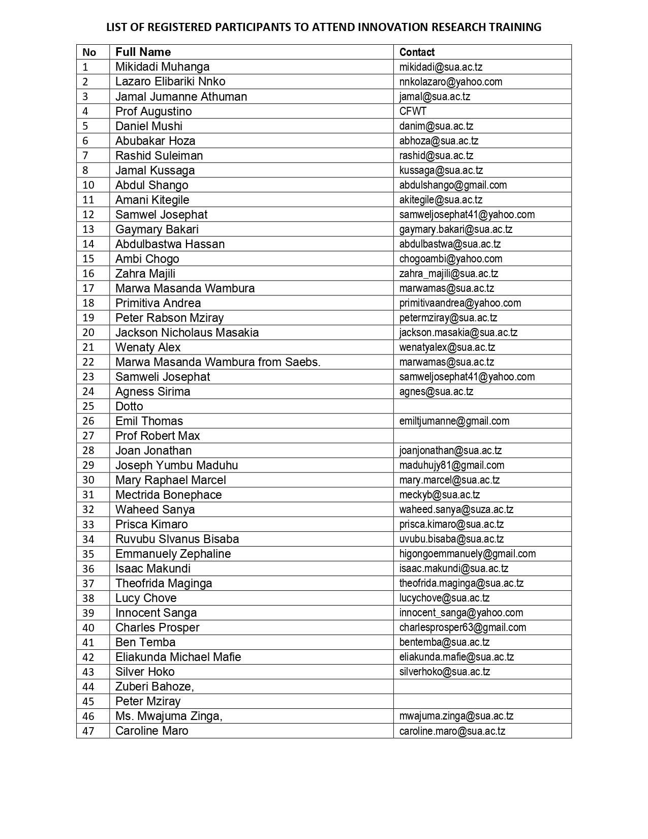 LIST OF REGISTERED PARTICIPANTS TO ATTEND INNOVATION RESEARCH TRAINING PROGRAM