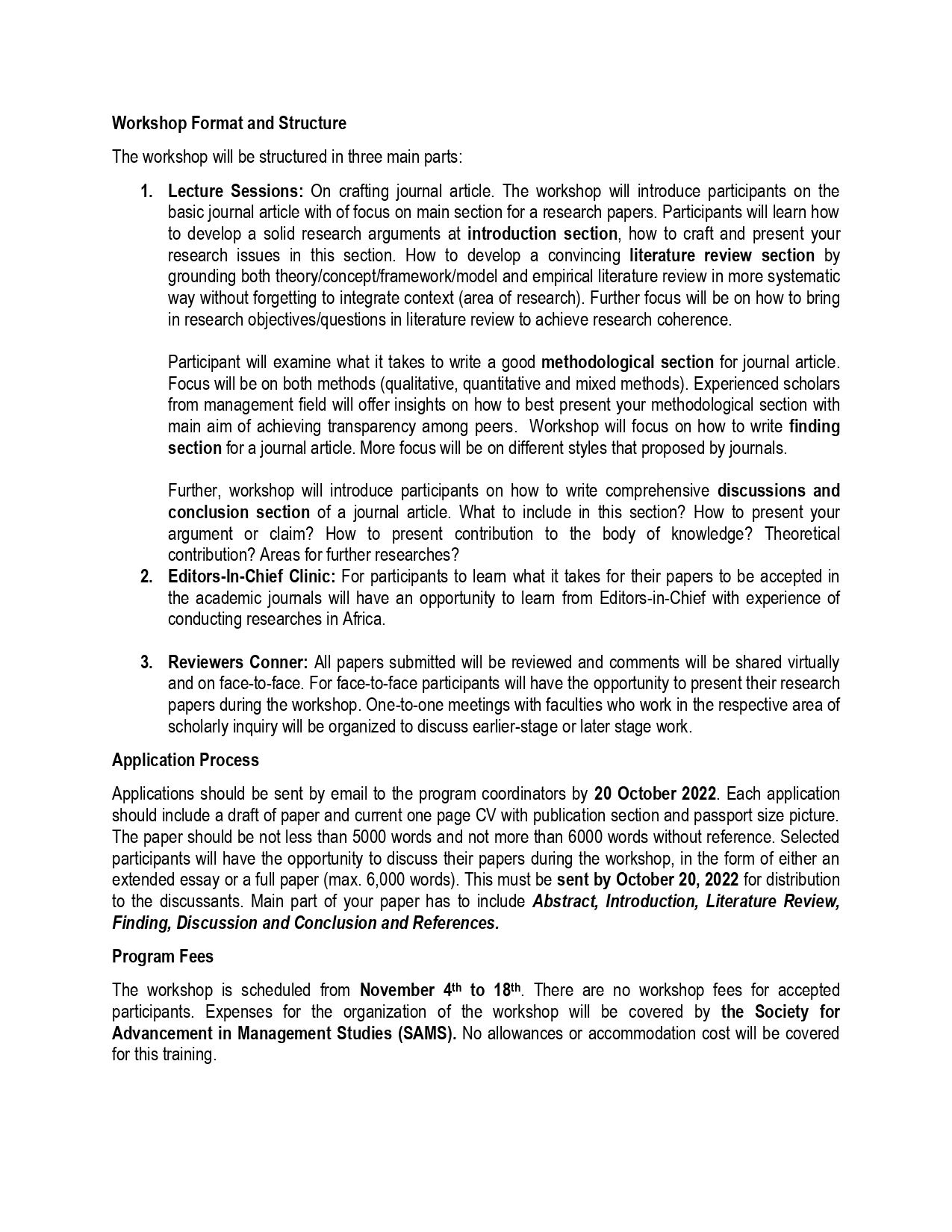 - Participants should confirm their attendance four (4) days before commencement of the training for easy arrangement and management of the training.