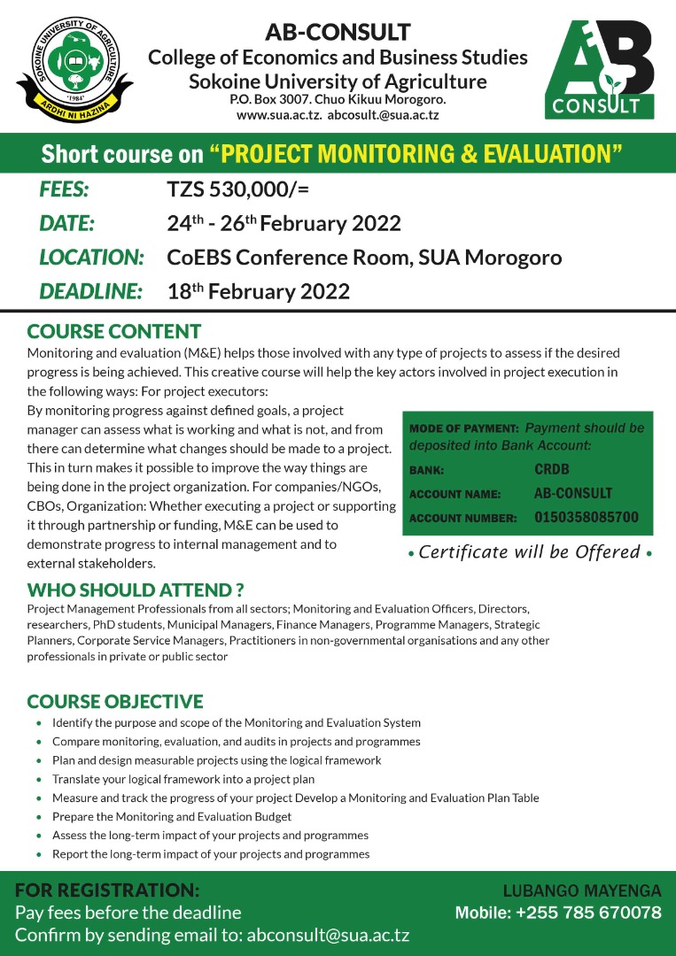 Sokoine University of Agriculture (SUA) is a public University based in Morogoro Municipality Tanzania.It is located on the slopes of the uluguru mountains.. Read More